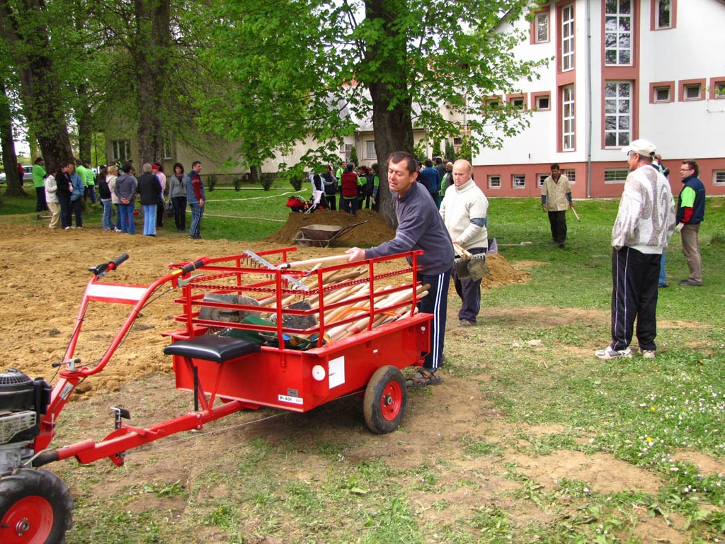 A közösségi akció nagyon jó hangulatban zajlott, együtt dolgoztak épek és fogyatékossággal élők. Összesen 114 önkéntes gyűlt össze, ami messze felülmúlta a várakozásokat. A területet a munkálatok megkezdése előtt a helyi önkéntesek tisztították meg. Önkéntesek azonban nemcsak Magyarszerdahelyről, hanem a szomszédos Pölöskefőről és Gelseszigetről is érkeztek, a GE Hungary Kft nagykanizsai fényforrásgyára és zalaegerszegi alkatrészgyára pedig egy egész busznyi lelkes önkéntessel segített a kivitelezésben. Ezen a napon tették rendbe a füves labdarúgópályát, készítették elő a pergola helyét, építették fel a pergolát és ültették el a fákat. Az elültetett fák mellé karókat vertek le, ezeket vadvédő hálóval vonták be. Mindehhez a Rehabilitációs Intézet biztosította a szerszámokat, töltésföldet, valamint az önkéntesek frissítőit is. A faültetési akció zárasaként pincepörkölt várta az önkénteseket.
